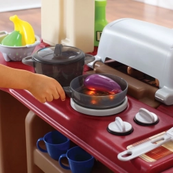 Die Küche ist mit einem Grill mit bequemem Zugang, Kühlschrank, Backofen, Mikrowelle, Spülbecken mit drehbarem Wasserhahn, Schränken und Schubladen ausgestattet. Die große Theke dient als Bar zum Ausgeben und Speisen. Dank des 103-teiligen Sets aus Geschirr und Lebensmitteln können Kinder sofort „loskochen“ und Familie sowie Freunde bewirten.
