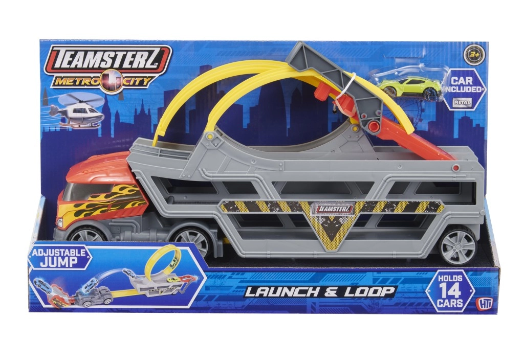 Verwandeln Sie jede Fahrt in Action. Der TEAMSTERZ-Transporter dient nicht nur zum Transport der Autos, sondern auch als vollwertige Rennbahn. Auf der Oberseite finden Sie einen gelben Looping, der sich leicht aufbauen lässt, sowie eine Rampe für spannende Sprünge. Dank des Aufziehauslösers schicken Sie das Auto mit maximaler Geschwindigkeit durch den Looping.