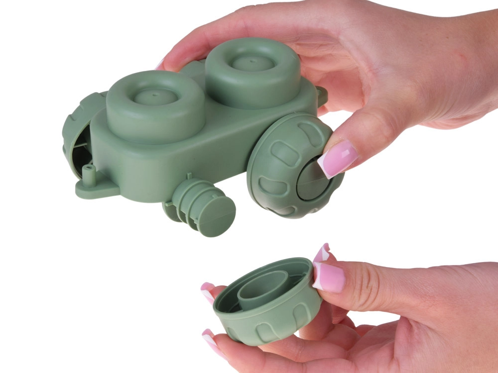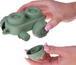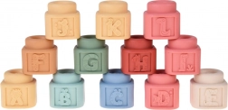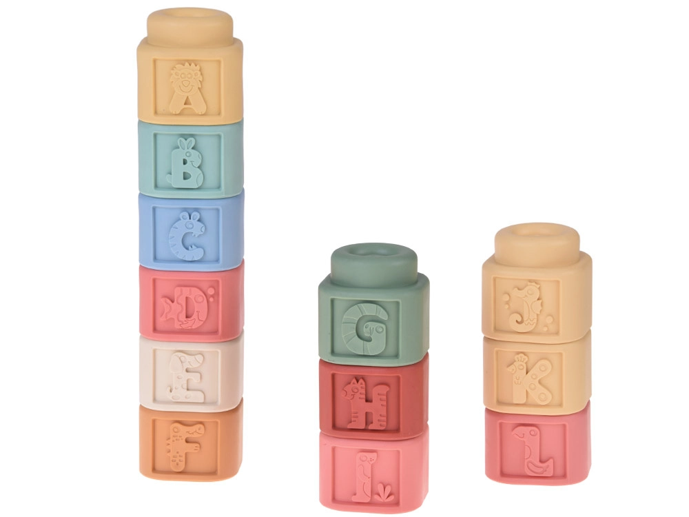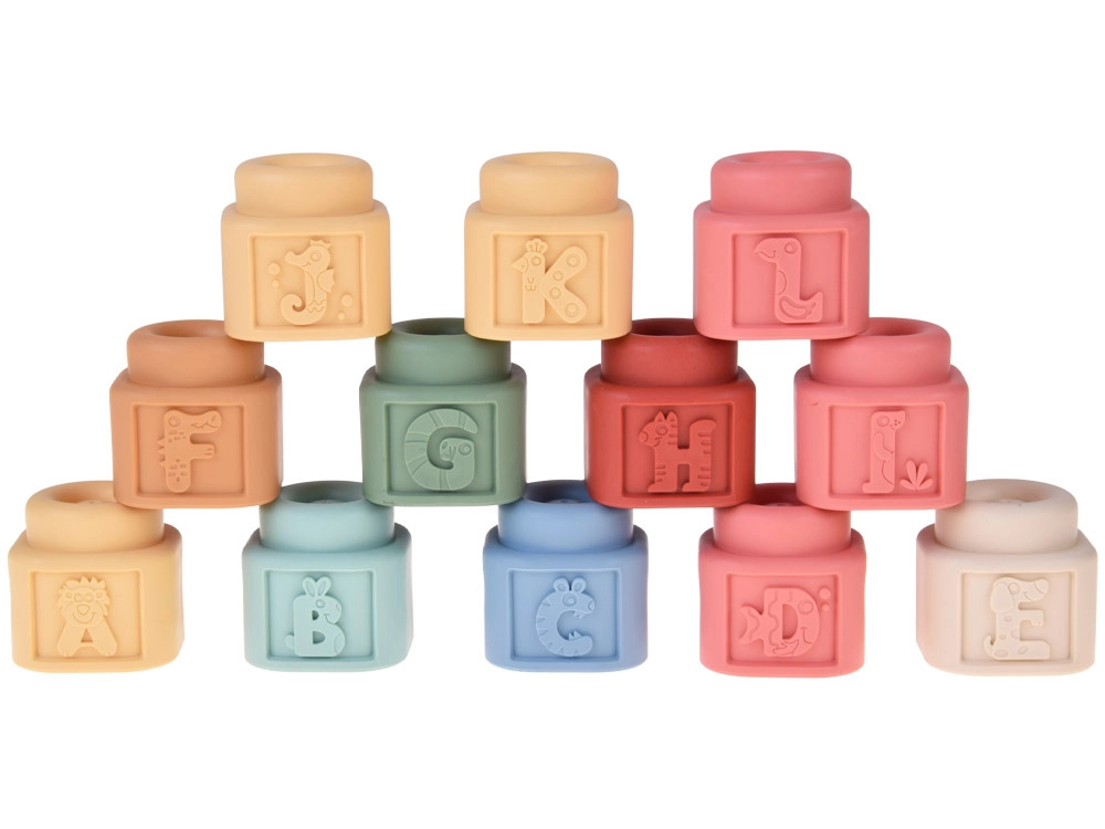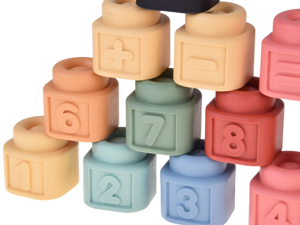 Das weiche, zusammendrückbare und ungiftige Material liegt gut in der Hand und ist sanft zu den Zahnfleischrändern – die Bausteine können auch als Beißspielzeug dienen. Abgerundete Kanten erhöhen die Sicherheit beim Spielen.