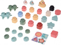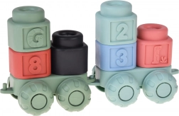 Dieses vielseitige Lernset verbindet Bauen, Sortieren und anregendes sensorisches Spiel. Weiche, zusammendrückbare Bausteine mit sicher abgerundeten Kanten liegen gut in der Hand, sind sanft zum Zahnfleisch und einige Elemente geben beim Drücken ein leises Quietschen von sich – das weckt die kindliche Neugier und verlängert die konzentrierte Spielzeit.