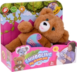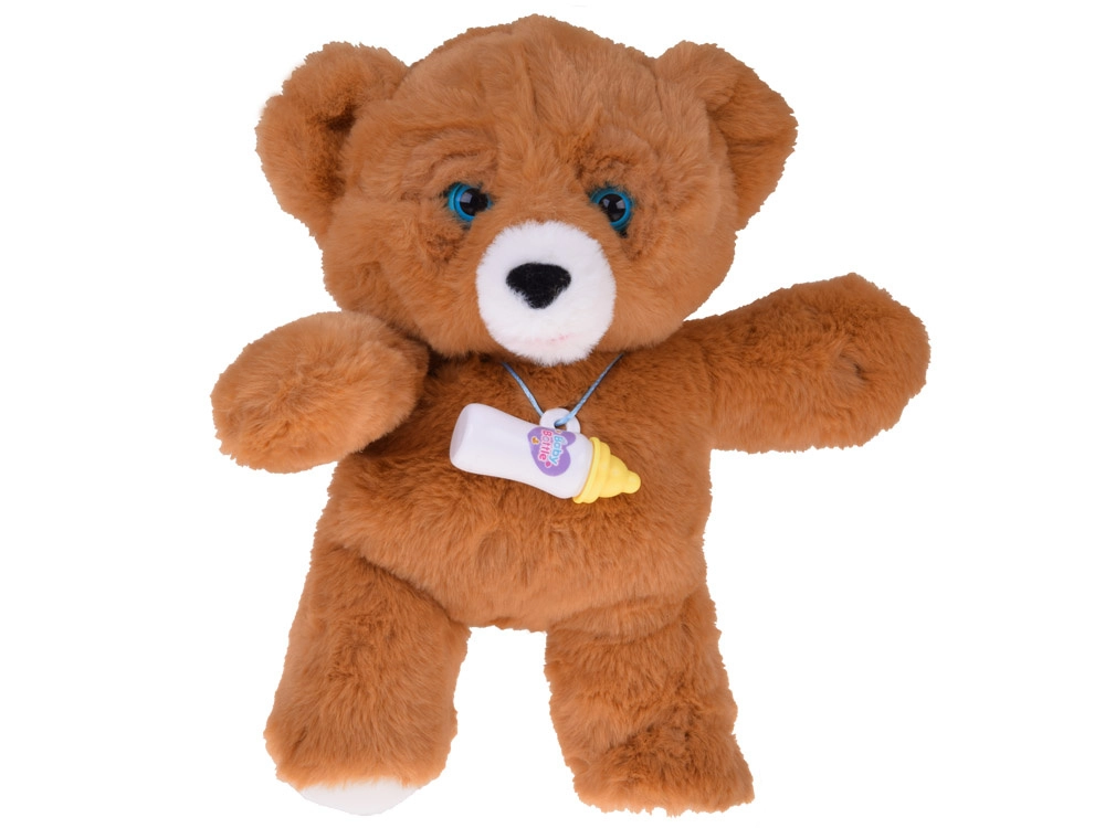 Der interaktive Teddybär ist aus weichem und kuscheligem Plüsch in Braun gefertigt und ideal zum Schmusen und Beruhigen vor dem Schlafen. Mit dabei ist ein Fütterfläschchen, mit dem Kinder Fürsorge lernen, auf Bedürfnisse reagieren und Empathie entwickeln. Die realistischen sich bewegenden Augen, die sich schließen und öffnen, verleihen dem Spiel Authentizität.