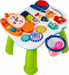 Entdecken Sie die spannende Welt des Lernens mit dem 6-in-1-Tisch: leuchtender Ballon, bewegliche Zahnräder, Bäumchen mit Schiebeelementen, bunte Klaviertasten, Rasseln und eine fröhliche Musikfernbedienung. Das Spielzeug spielt Melodien ab, erzeugt Geräusche und leuchtet in bunten Farben, was Ihr Kind zu aktivem Spiel und Lernen motiviert.