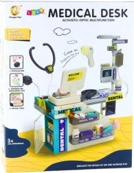 Entdecken Sie das komplette Arzt- und Zahnarzt-Set für Kinder, das ein authentisches Praxis-Erlebnis bietet. Das durchdachte Design mit Tisch samt Ablagen und Schubladen, einem Monitor-Imitat, Untersuchungslampe und EKG-Panel fördert kreative Rollenspiele und Lernen durch Spiel. Realistisches Zubehör, darunter ein Stethoskop mit Sound und ein Thermometer mit Beleuchtung, verleiht dem Spiel Glaubwürdigkeit.
