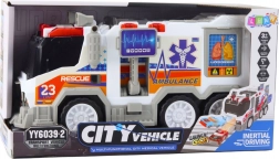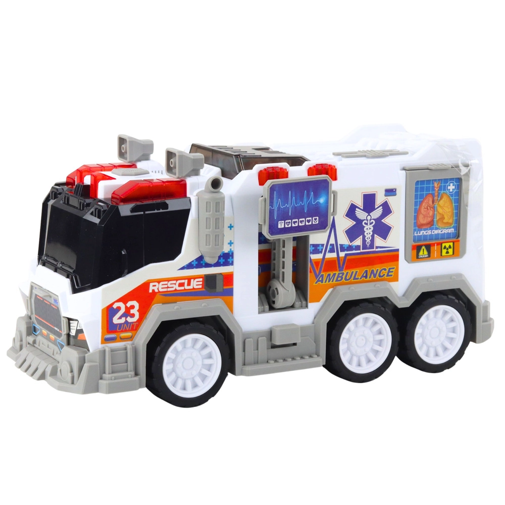 Dieser detailreich gestaltete Rettungswagen überzeugt mit der bei Kindern beliebten Ausführung in Weiß-Rot mit blauen Elementen und markanten medizinischen Aufdrucken. Durch Drücken der Tasten werden Sirenen- und Lichteffekte aktiviert, die actionreichen Rettungsszenarien zusätzliche Authentizität verleihen.