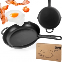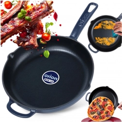 Die Pfanne ist kompatibel mit Gas-, Elektro-, Glaskeramik-, Halogen- und Induktionskochfeldern und kann auch im Backofen, über offenem Feuer oder auf dem Grill verwendet werden. Der lange Griff mit Aufhängeöse und der Hilfsgriff erleichtern die Handhabung. Doppelte Ausgießer ermöglichen ein bequemes Abgießen von Saucen oder Fett ohne Tropfen.