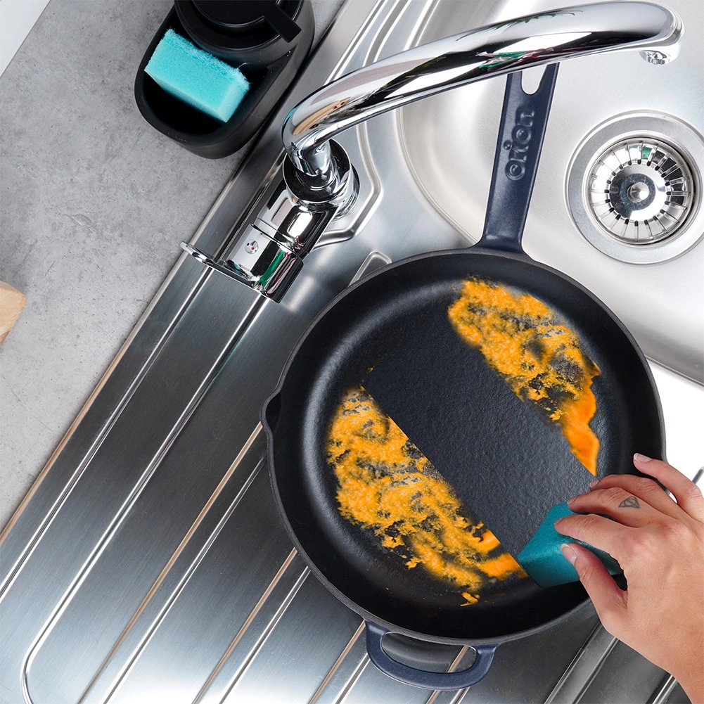 Die Pfanne hält hohe Temperaturen aus und ist geeignet für Gas, Elektro, Glaskeramik, Halogen, Induktion sowie zum Backen im Ofen oder über offenem Feuer.