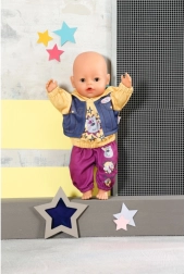 Das stylische Streetwear-Outfit BABY born für 43 cm-Puppen bietet einen 2-in-1-Kapuzenpullover mit Weste im Jeans-Look und bequeme Jogginghose in Brombeerfarbe. Fröhliche Tier- und Sternenmotive fördern die Fantasie und langanhaltenden Spielspaß, das An- und Ausziehen ist dank der hochwertigen Verarbeitung ganz einfach und im Set ist auch ein praktischer Kleiderbügel enthalten.