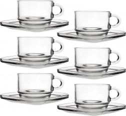 Das Set besteht aus strapazierfähigem Glas für lange Lebensdauer und komfortable tägliche Nutzung. Ein ergonomischer Henkel sorgt für einen sicheren Griff, die Untertassen fangen Tropfen auf und bieten Platz für Löffel oder Keks. Dank der Spülmaschinengeeignetheit ist die Pflege besonders einfach.
