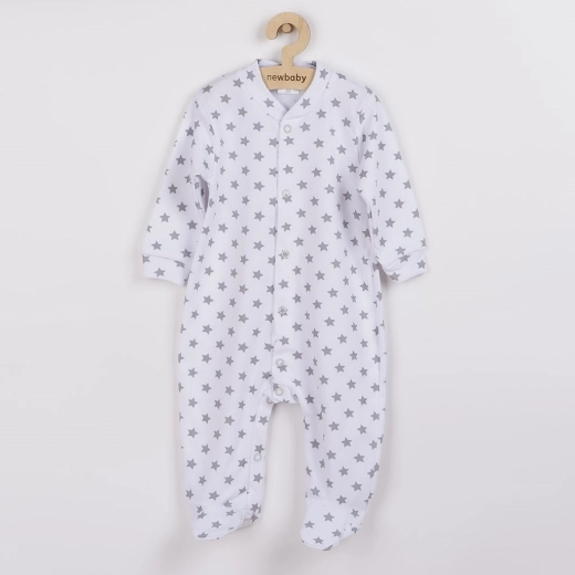 Bequemer und stylischer Baby-Strampler NEW BABY Classic II in grauer Farbe mit niedlichen Sternchen. Dank der Druckknöpfe über die gesamte Länge und im Schritt ist das schnelle An- und Ausziehen sowie Wickeln ein Kinderspiel. Der Strampler besteht aus weicher 100% Baumwolle, die sanft zur Babyhaut ist und ganztägigen Tragekomfort bietet.