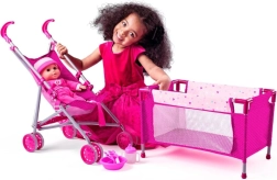 Dieses schöne Set enthält alles, was Ihr Kind für die Pflege seiner Lieblingspuppe benötigt. Es umfasst einen Sportkinderwagen mit Metallkonstruktion, der dank einfacher Handhabung äußerst praktisch ist. Außerdem ist ein Reisebettchen enthalten, ideal für das Spielen zu Hause und im Freien.