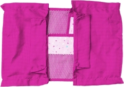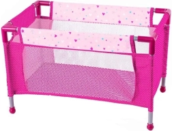 Das rosa Bettchen mit Metallrahmen ist ideal für das Spielen zu Hause und im Freien. Es ist tragbar und leicht.