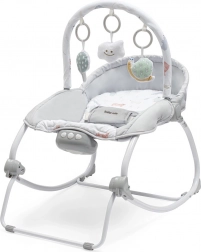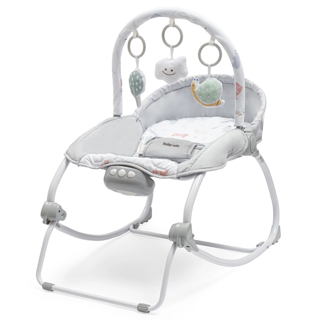 Ein universeller Helfer für jeden Haushalt: Die BABY MIX Schnecken-Wippe begleitet Ihr Kind von den ersten Lebenstagen bis ins Kleinkindalter. Sie bietet sanftes Schaukeln mit der Möglichkeit, in eine feste Position zu arretieren – ideal zum Beruhigen und Schlafen sowie zum Füttern oder Spielen. Das integrierte Modul mit Klängen, Licht und Vibration schafft eine angenehme, beruhigende Umgebung.