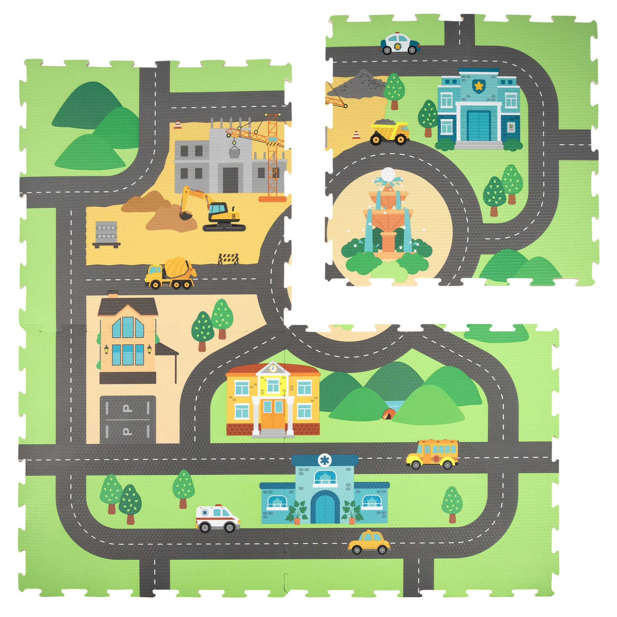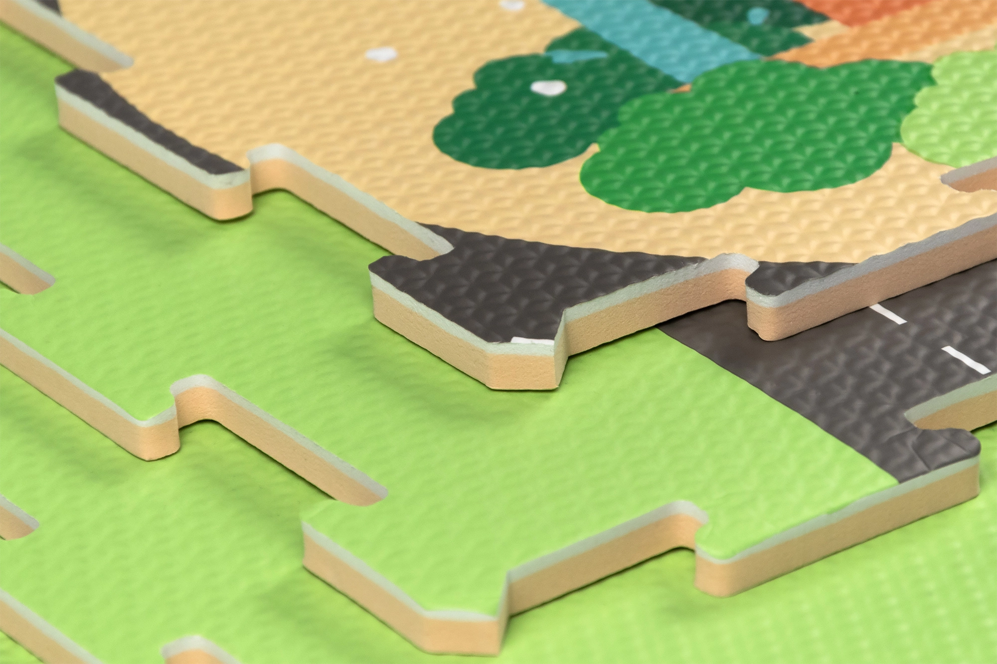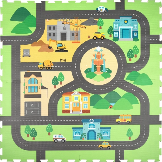 Die HUMBI Lernpuzzle aus Schaum verbinden Lernen und Spiel in einem. Dank bedruckter Straßen und Gebäude erstellen Kinder im Handumdrehen ihre eigene Stadt, planen Routen und entwickeln ihre Vorstellungskraft. Die Oberfläche ist weich, dämpft Stöße und schützt vor Kälte vom Boden.
