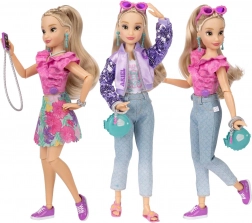 Im Set finden Sie gleich zwei komplette Outfits und viele Accessoires für endlose Kombinationen. Von der glitzernden lila Jacke mit Paillettenärmeln über den geblümten Rock bis hin zu stylischer Brille und Tasche – alles auf den Meeresstil abgestimmt.