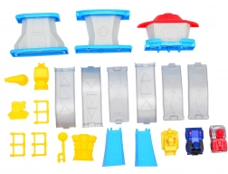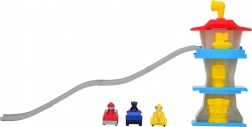 Der markante Turm mit rotem Dach und grauer Rampe ermöglicht es, Fahrzeuge aus der Höhe starten zu lassen und dynamische Rennen sowie Rettungsaktionen zu inszenieren.