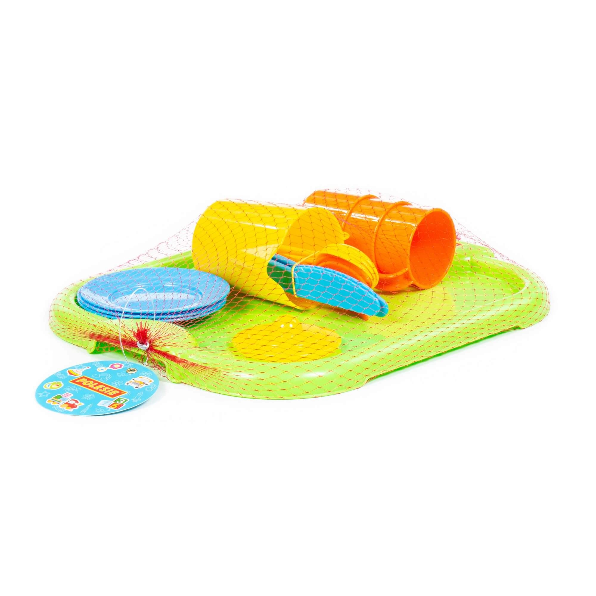 Das grüne Serviertablett hilft Kindern, alle Teile auf einmal zu tragen und wieder aufzuräumen.