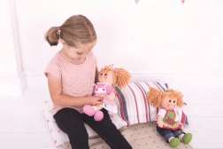 Liebevolle Verzierungen und der kuschelweiche Stoff regen zum Geschichtenerzählen an und fördern stundenlanges fantasievolles Spielen mit Puppen.