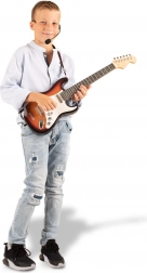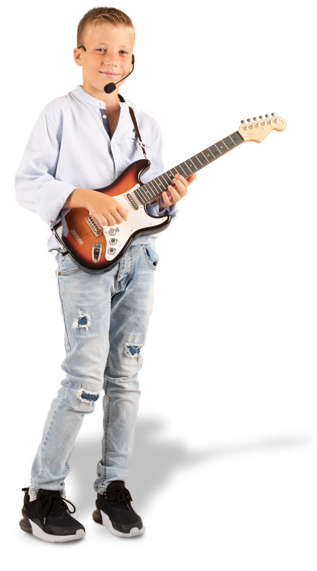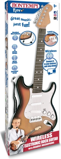 Diese stylische elektrische Kinder-Gitarre ist ideal für die ersten Schritte in die Welt der Musik. Sie bietet eine kabellose Verbindung, sodass Kinder sich beim Spielen und Singen frei bewegen können. Im Lieferumfang enthalten sind ein Mikrofon mit Headset sowie ein praktischer Schultergurt für ein authentisches Konzertgefühl.