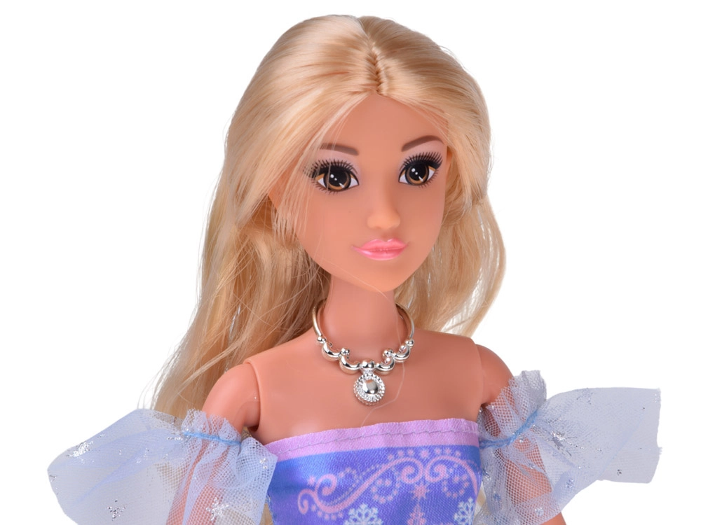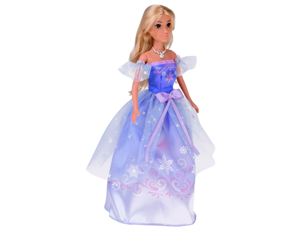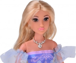 Die Prinzessin hat langes blondes Haar zum Kämmen, ein detailreiches Kleid mit Tüll und Schleife sowie Accessoires – Tiara und Halskette. Bewegliche Gliedmaßen erleichtern das Posieren und Spielen.