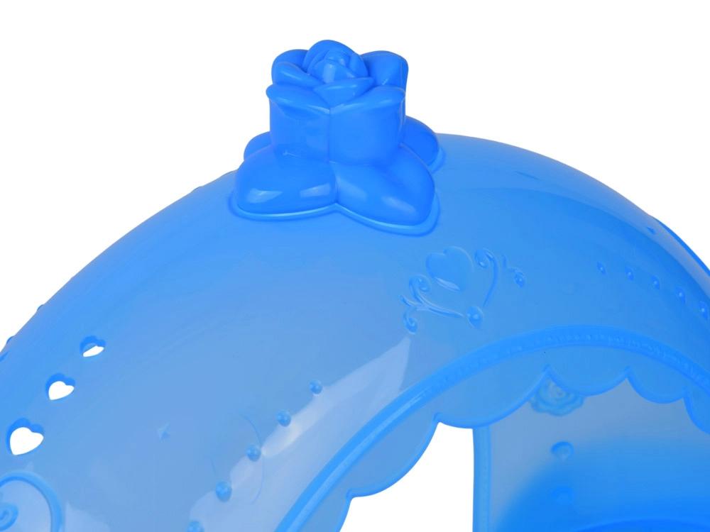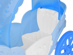 Stilvolle „Kürbis“-Kutsche mit reichen Verzierungen, bequemem Sitz und leichtem Lauf. Perfekt zum Geschichtenerzählen und zum Bewegen der Puppe durchs Königreich.