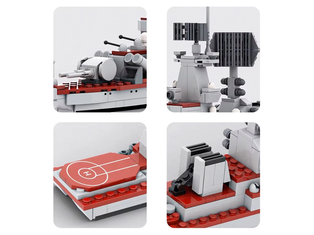Dieses Bauset bietet stundenlangen Bauspaß und ein beeindruckendes Ergebnis im Regal. Dank fest sitzender Teile entsteht eine stabile Konstruktion mit reichhaltiger Ausstattung – von Radaren über Geschütztürme bis zu Aufbauten an Deck. Das realistische Erscheinungsbild wird durch die beigefügten Aufkleber unterstützt, die dem finalen Modell einen authentischen Look verleihen.