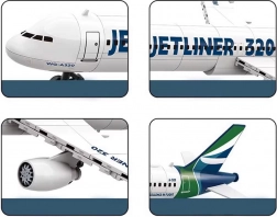 Der Bausatz des Verkehrsflugzeugs JETLINER 320 ist eine großartige Wahl für Kinder und Erwachsene, die Bauen und Luftfahrt lieben. Aus 133 sorgfältig gefertigten Teilen entsteht ein zweimotoriges Modell in elegantem Weiß mit blau-grünen Details. Dank der Aufkleber wirkt das Modell noch realistischer und kommt sowohl im Regal als auch beim Spielen schön zur Geltung.