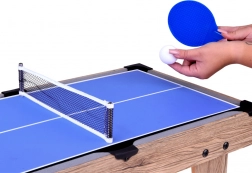 In wenigen Sekunden wechseln Sie die Spielfläche: vom präzisen Zielen beim Billard über dynamische Ballwechsel beim Tischtennis und den pfeilschnellen Puck beim Airhockey bis zu spannenden Toren beim Tischkicker. Im Lieferumfang ist alles enthalten – von Kugeln, Queues und Dreieck über Schläger und Bälle bis hin zu Torzählern und Pucks.