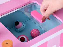 Zwei große Räder ermöglichen das mühelose Versetzen des Stands im Zimmer, auf die Terrasse oder in den Garten. Das Spiel fördert Fantasie, Kreativität, Feinmotorik und soziale Fähigkeiten in Rollenspielen.