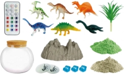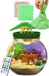 Das magische Terrarium mit Dinosauriermotiv ermöglicht Kindern, eine eigene Szene mit Sand, Pflanzen, Steinchen und Figuren zu gestalten. Dank der LED-Beleuchtung mit 13 Farben und 3 Modi kann die Atmosphäre der Stimmung angepasst werden – für eine beeindruckende Deko, die nachts sanft leuchtet.
