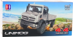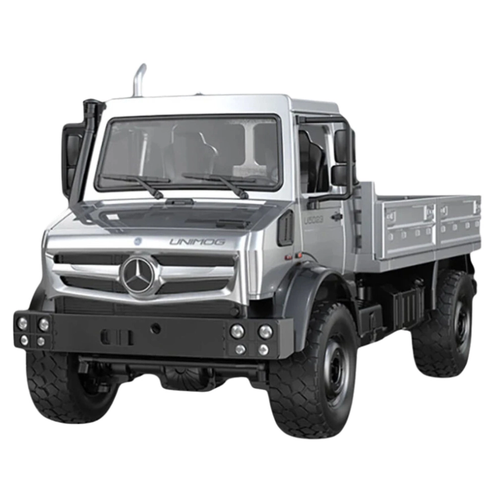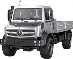 Der RC-Geländewagen MERSEDES-BENZ UNIMOG 4x4 ist ein detailreiches Modell mit Metallelementen sowie zu öffnenden Türen und Motorhaube. Proportionales Gas und Lenkung ermöglichen sanftes Anfahren, Bremsen und präzises Kurvenfahren. Der stabile 2,4-GHz-Sender bietet eine zuverlässige, störungsfreie Steuerung mit einer Reichweite von bis zu 25 m.