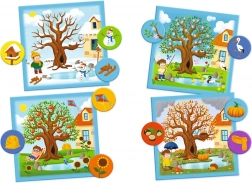 Dieses clevere und unterhaltsame Spiel führt kleine Spieler an die Erkennung der charakteristischen Merkmale der einzelnen Jahreszeiten heran. Kinder sortieren und ordnen Jetons den richtigen Tafeln zu, erweitern ihren Wortschatz und lernen, Veränderungen in der Natur im Jahreslauf wahrzunehmen. Freundliche Illustrationen mit Motiven der RODZINA TREFLIKÓW halten die Aufmerksamkeit und unterstützen die Freude am Lernen.