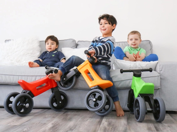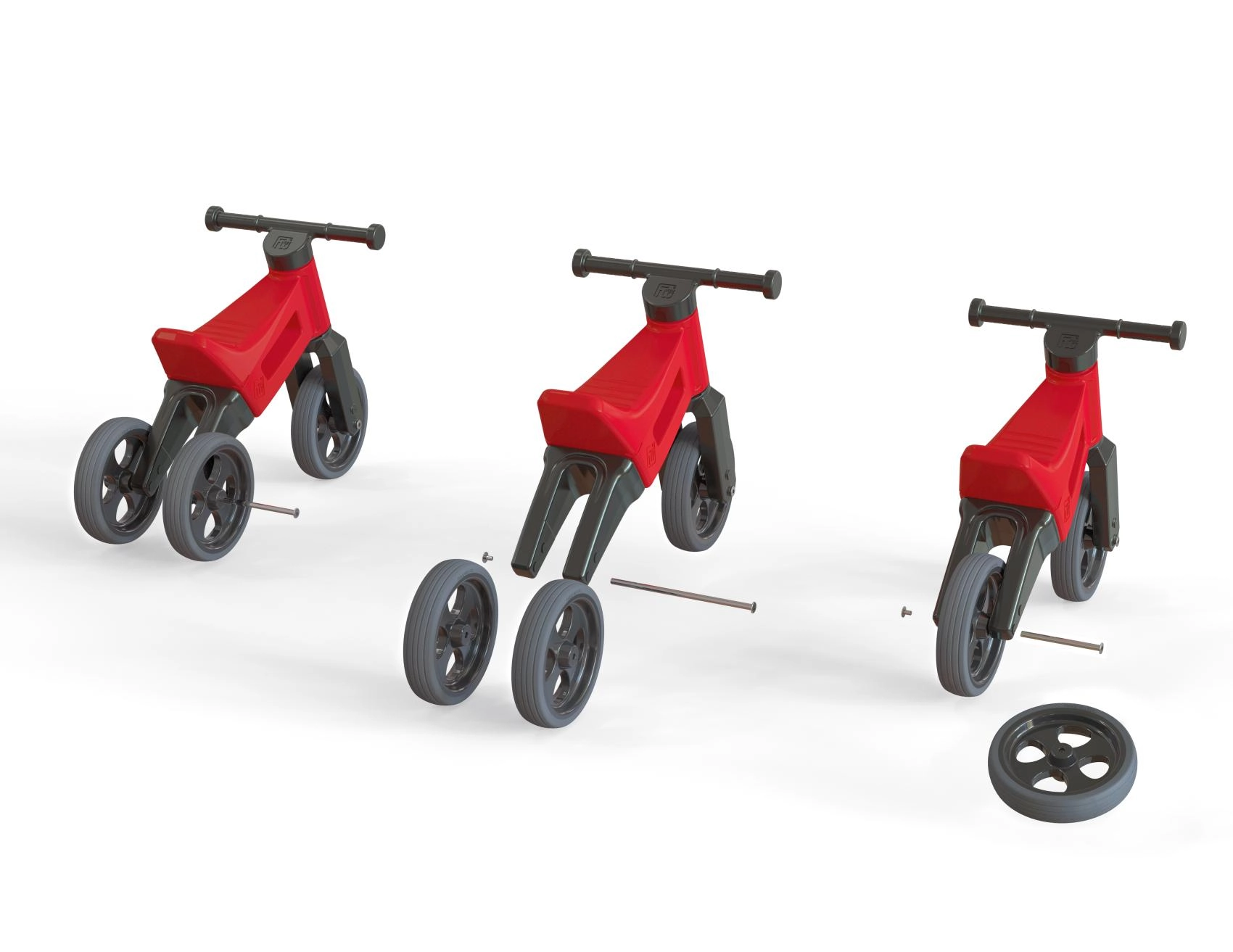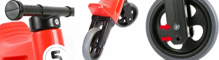 In wenigen Minuten verwandeln Sie das stabile Dreirad in ein zweirädriges Balance-Laufrad. Ideal als Übergang zum ersten Fahrrad.