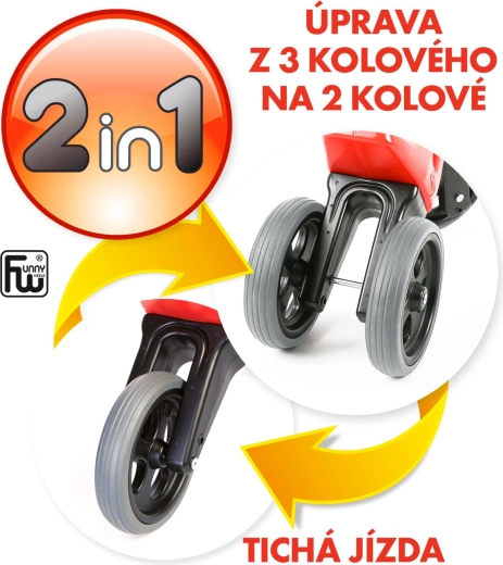 Das originale tschechische Laufrad FUNNY WHEELS Rider Sport wurde entwickelt, um Kindern die ersten Schritte Richtung Fahrradfahren zu erleichtern. Dank des 2-in-1-Systems verwandeln Sie es in wenigen Minuten vom Dreirad zum Zweirad, und mit zwei Sattelhöhen (Abstand 3 cm) begleitet es Ihr Kind in verschiedenen Wachstumsphasen.