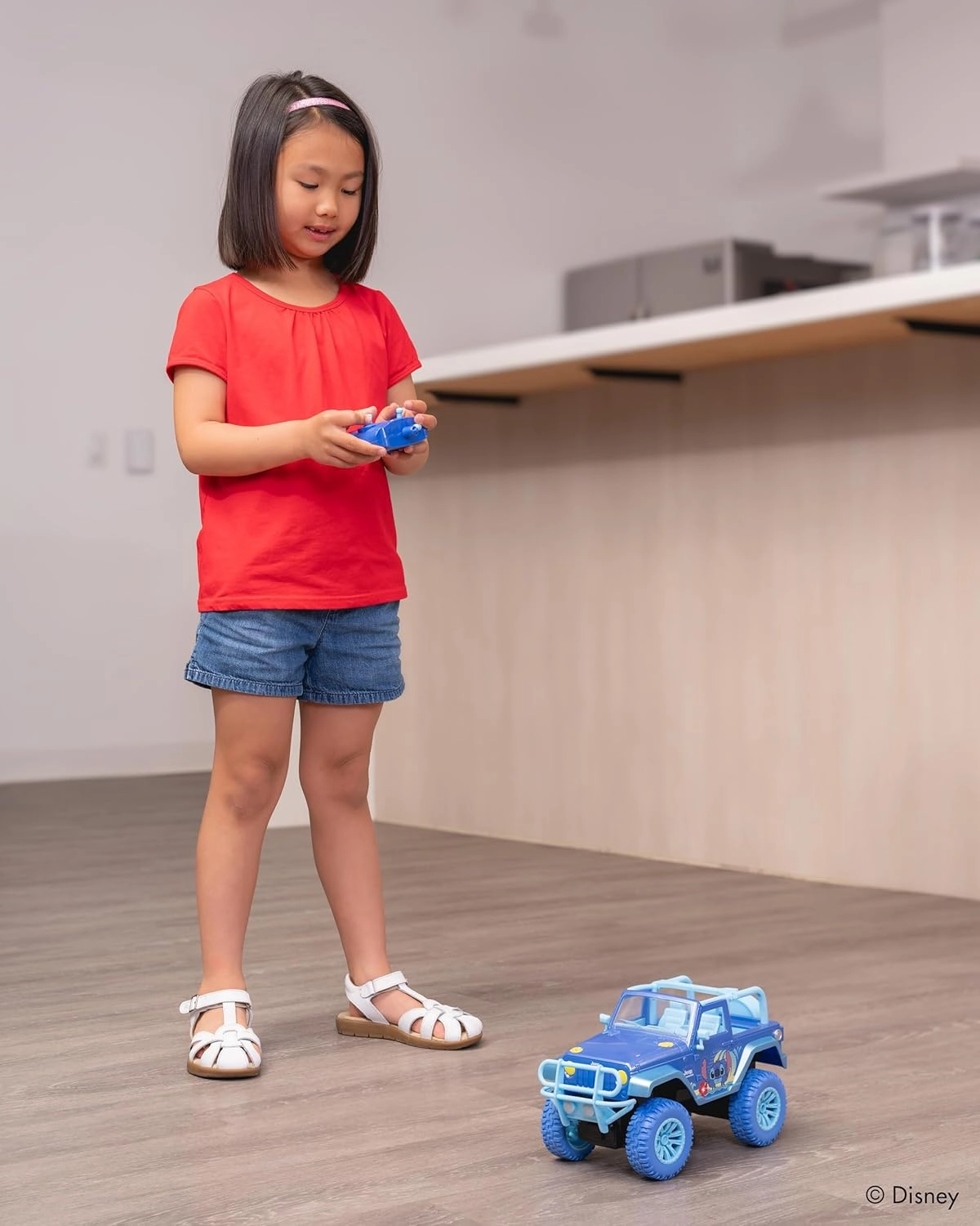 Das Modell im Maßstab 1:16 ist etwa 29 cm lang, besitzt ein erhöhtes Fahrwerk und markante Kotflügel. Im Lieferumfang enthalten sind eine übersichtliche Fernsteuerung und ein Stickerbogen zur individuellen Gestaltung. Das perfekte Geschenk für Fans von Lilo & Stitch und für alle Kinder, die actionreiches Fahren und kreatives Spielen lieben.