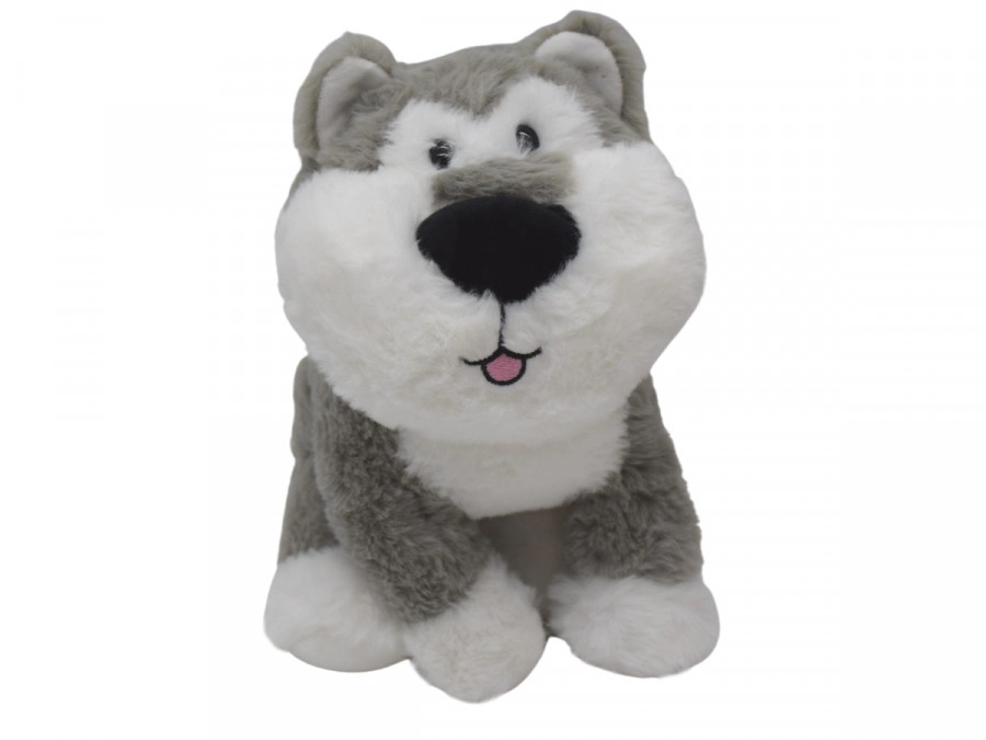 Zur Auswahl stehen 3 Farbvarianten (grau‑weiß, braun‑weiß, braun‑schwarz). Jeder Hund hat eine weiche Plüschoberfläche, eine angenehme Haptik und strapazierfähige Nähte, die eine lange Lebensdauer garantieren. Der Preis ist für 1 Stück angegeben.
