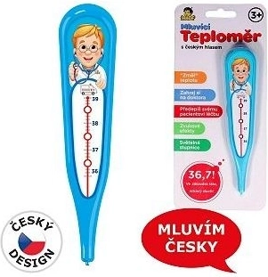 Lichtskala zeigt an, wie es dem Plüschtier geht, und eine deutsche Stimme sagt Ihnen, was zu tun ist, einfach die Spitze des Thermometers drücken. Das Thermometer ist aus Kunststoff gefertigt, hat eine blau-weiße Farbe und das Design eines fröhlichen Arztes. Es fördert die Fantasie und Kreativität Ihrer Kleinen, die so mit Tieren, Geschwistern oder Freunden Arzt spielen können.