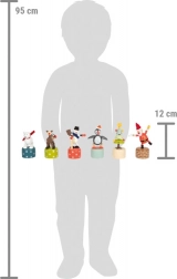 Fröhliche Motive wie Schneemann, Pinguin, Weihnachtsmann, Rentier, Eisbär oder Weihnachtsbaum erhellen jede Festzeit. Die Figuren bestehen aus hochwertigem, robustem Holz und liegen dank ihrer Maße optimal in Kinderhänden. Mit einem sanften Druck auf den Sockel beginnt die Figur zu „tanzen“ und bereitet viel Freude.