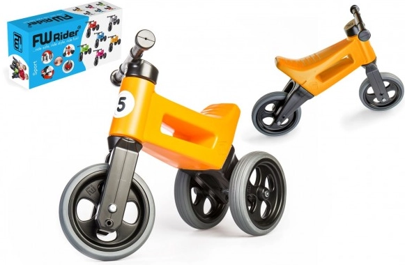 Das leichte Laufrad FUNNY WHEELS Rider Sport 2-in-1 wächst dank der einfachen Umrüstung von Dreirad auf Zweirad mit dem Kind mit. Es bietet eine verstellbare Sitzhöhe von 28/30 cm, leise, weiche Räder, die pannensicher sind, sowie eine sichere Lenkanschlagbegrenzung. Ideal für Kinder ab 18 Monaten mit einer Tragkraft von 25 kg, hergestellt aus unbedenklichem Kunststoff in der Tschechischen Republik.