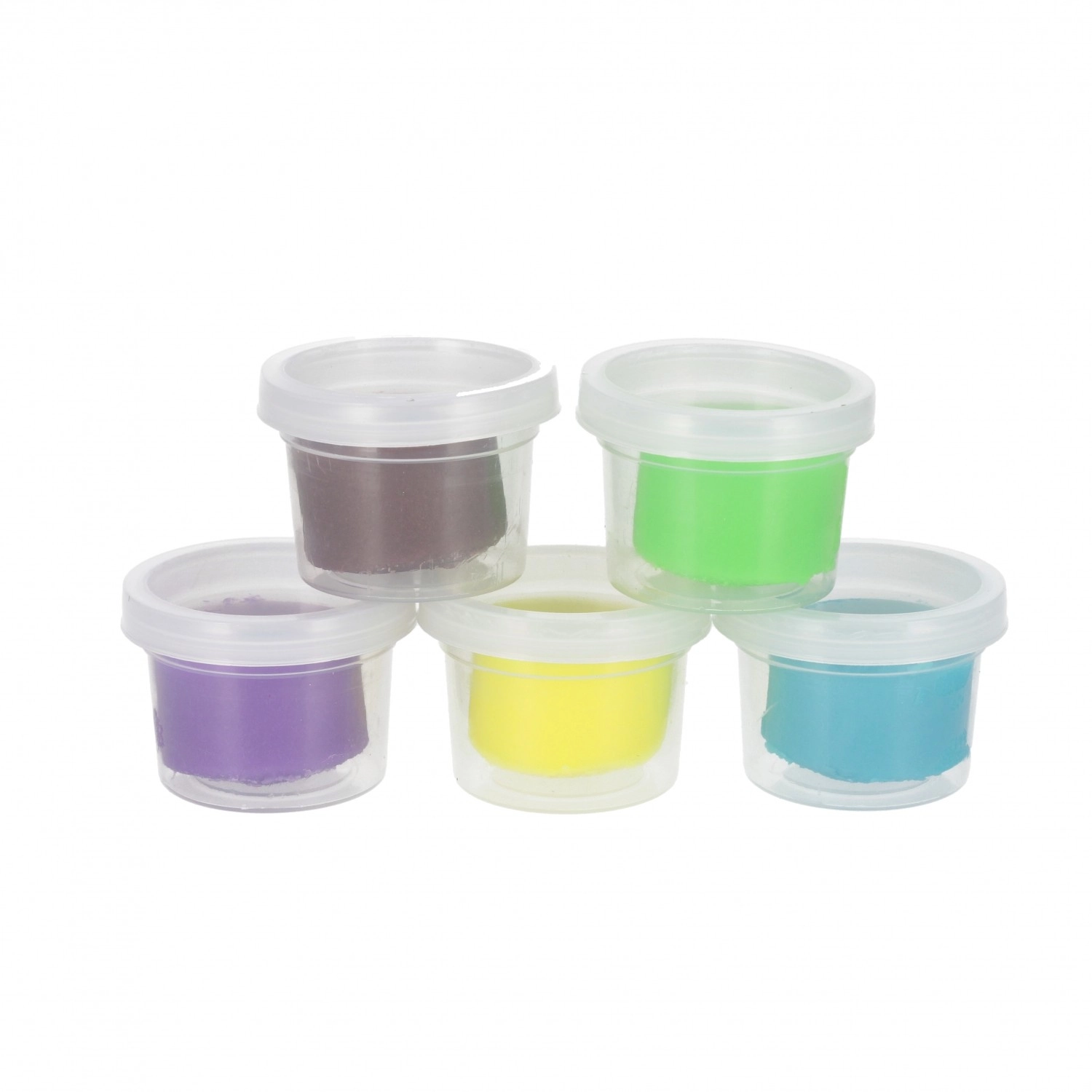 Transparente, wiederverschließbare Becher halten die Knetmasse weich und einsatzbereit. Leicht zu verstauen, weniger Unordnung.