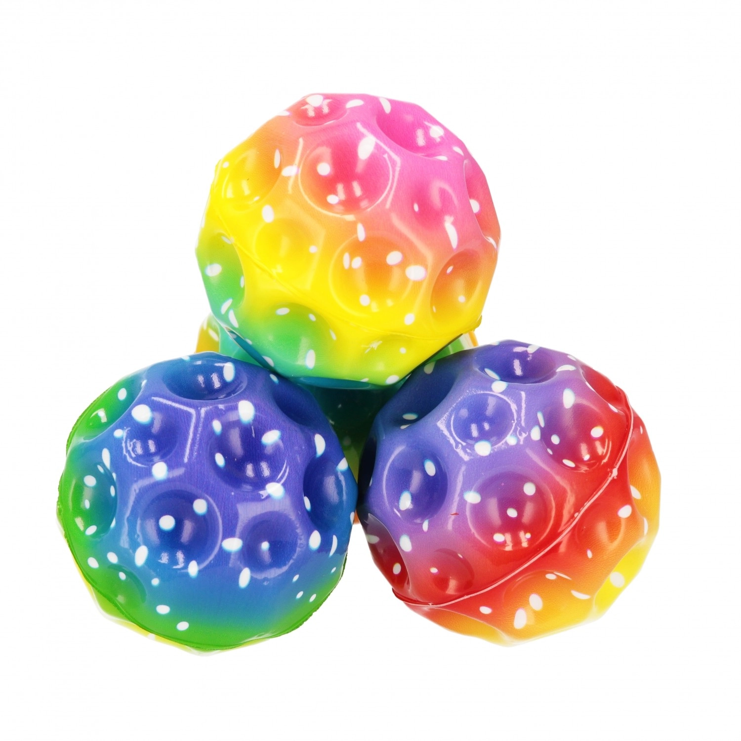 Schenken Sie Kindern Bewegung und Lachen mit dem regenbogenfarbenen Hüpfball. Dank spezieller Form und strukturierter Oberfläche springt der Ball in verschiedene Richtungen, sodass jedes Spiel anders und spannender wird. Das bunte Design zieht die Aufmerksamkeit auf sich und motiviert zum aktiven Spielen.