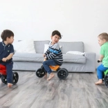Durch einfaches Austauschen der Hinterräder wechseln Sie vom extra stabilen Dreiradmodus zum Zweirad für das Gleichgewichtstraining.