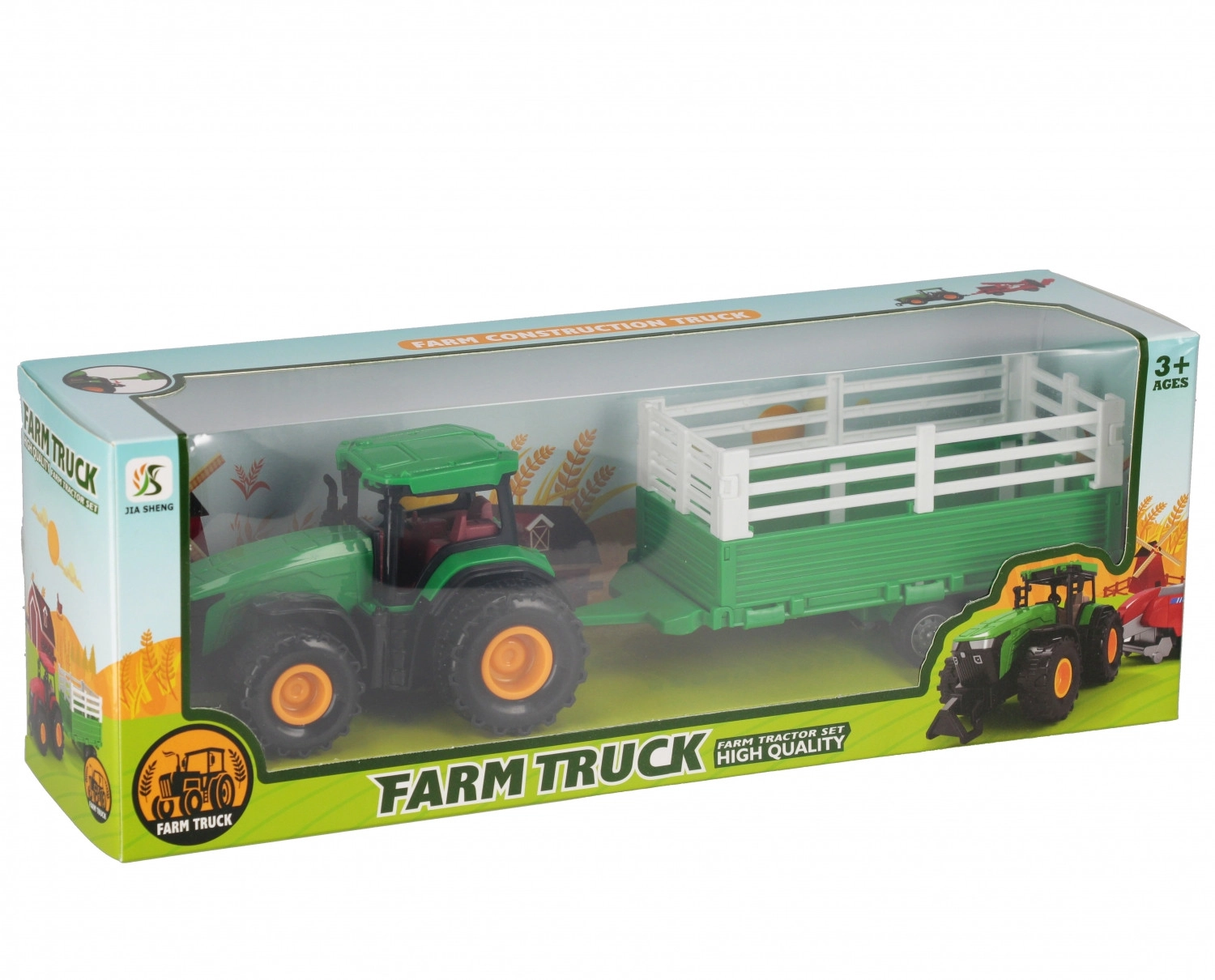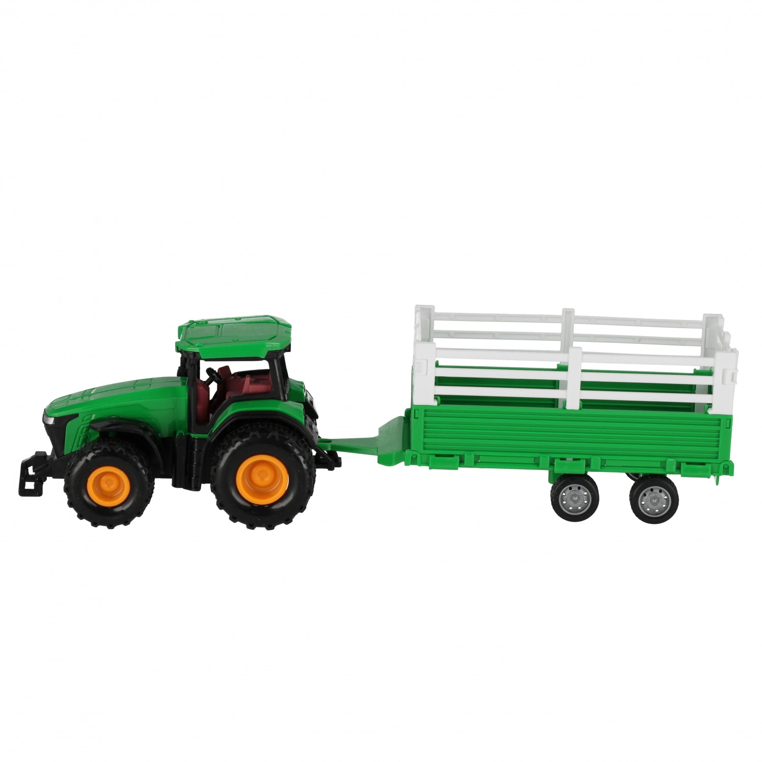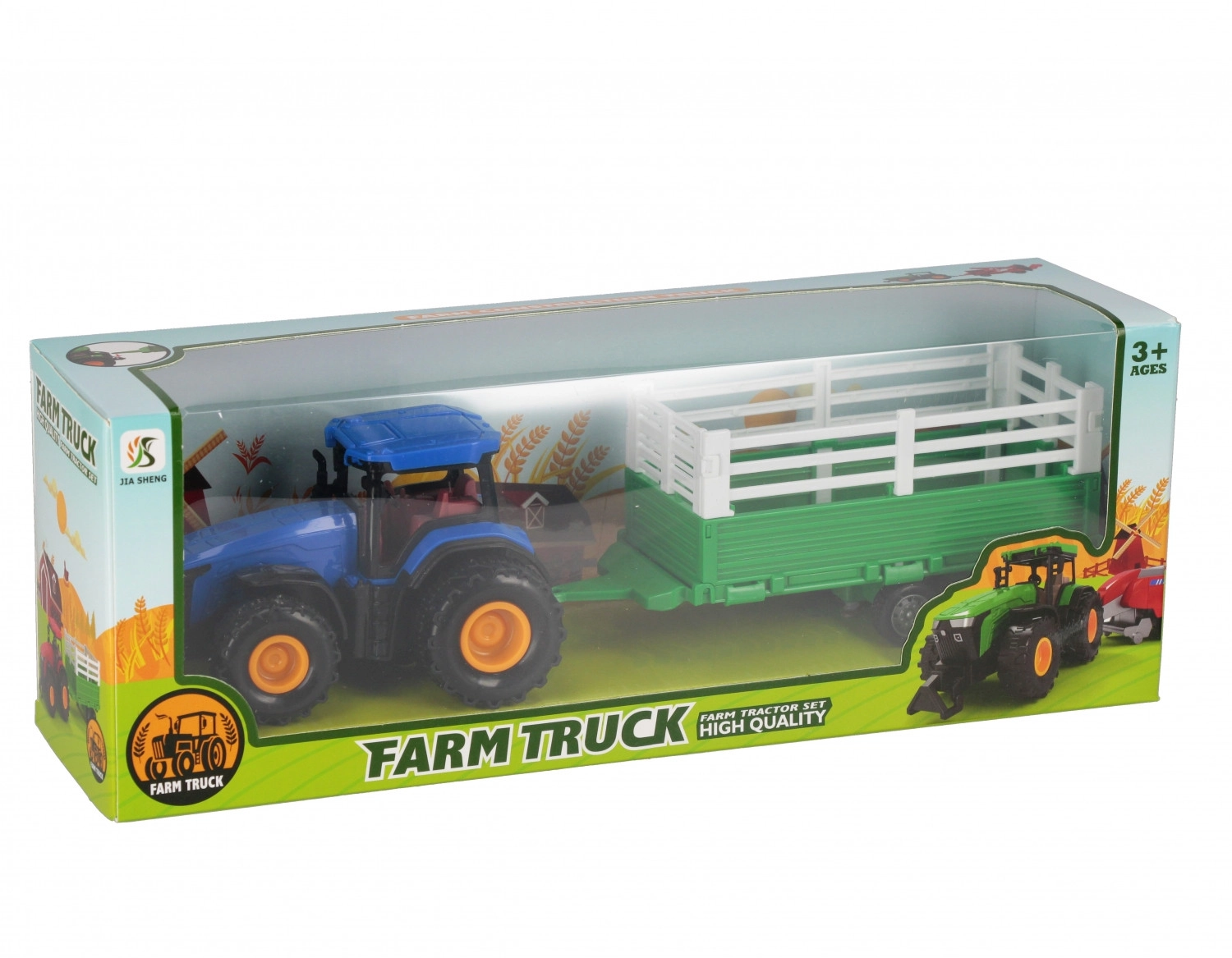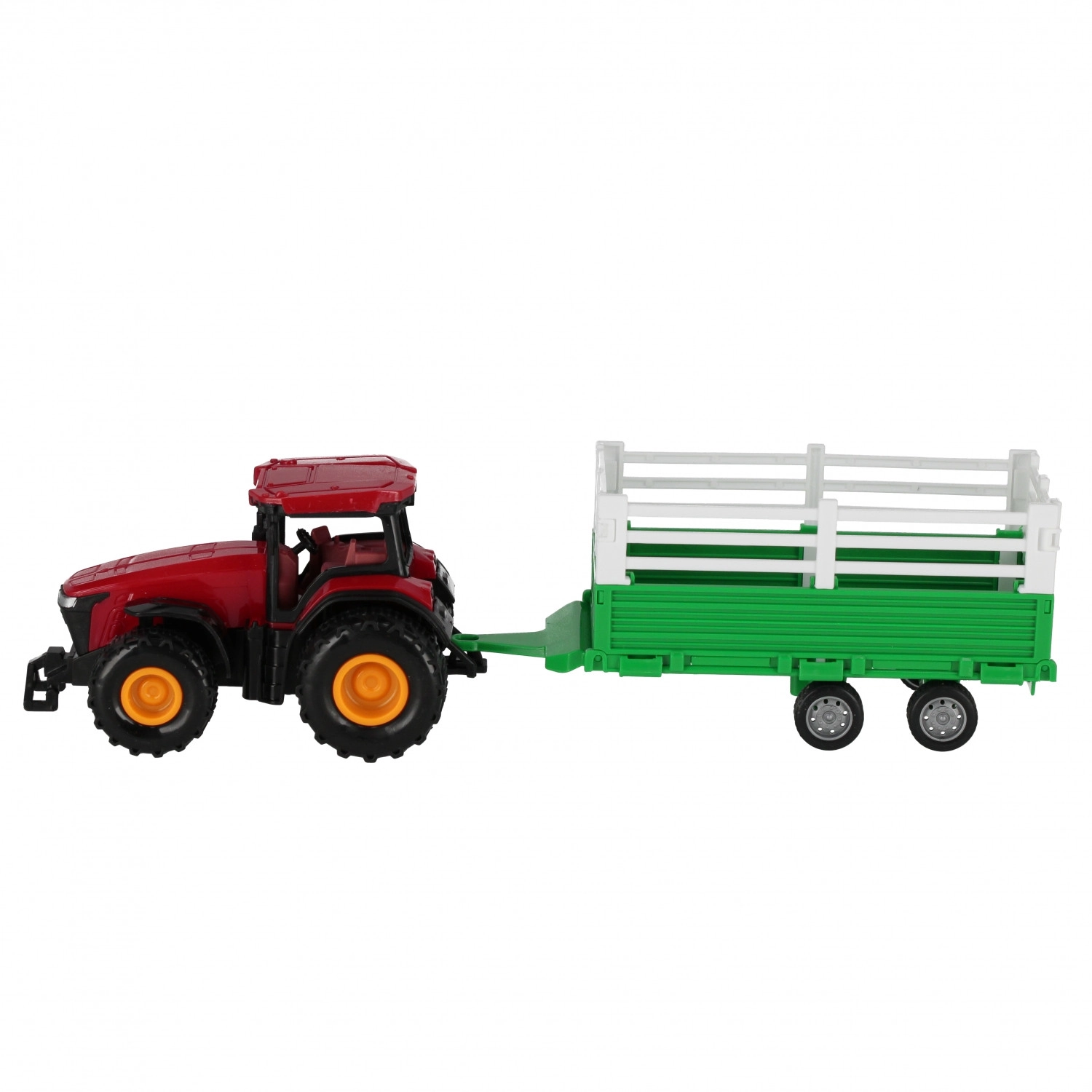 Unterhaltsames Landwirtschafts-Set für kleine Fahrer – Traktor mit abnehmbarem Anhänger und Pull-Back-Funktion. Einfach nach hinten ziehen und der Traktor fährt von selbst los. Realistische Details, rollende Räder und ein Anhänger zum Transport von Ladung. Größe ca. 33 × 12 × 9 cm, geeignet für Kinder ab 3 Jahren.