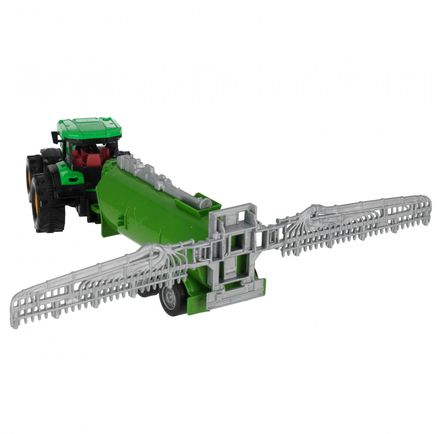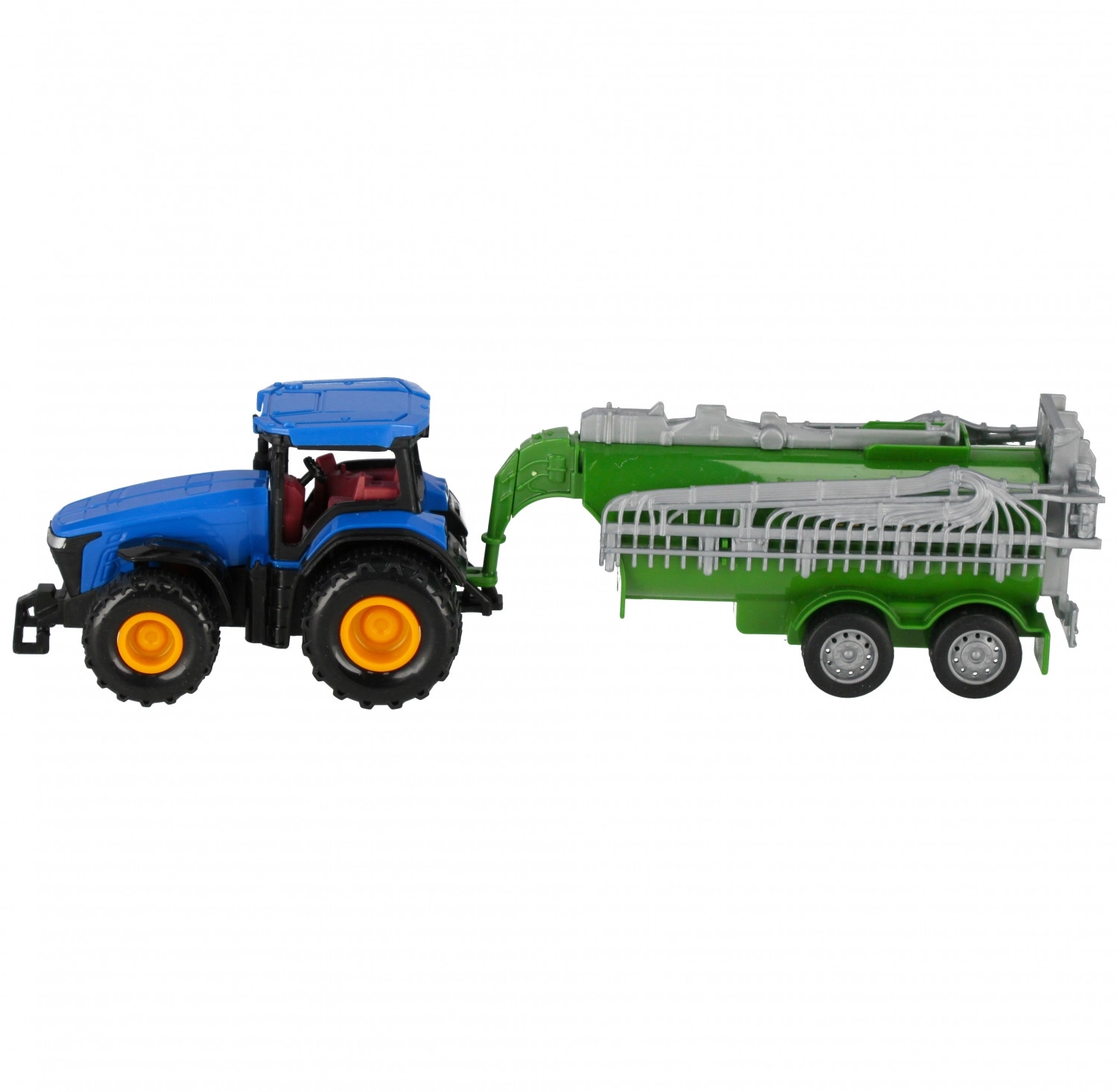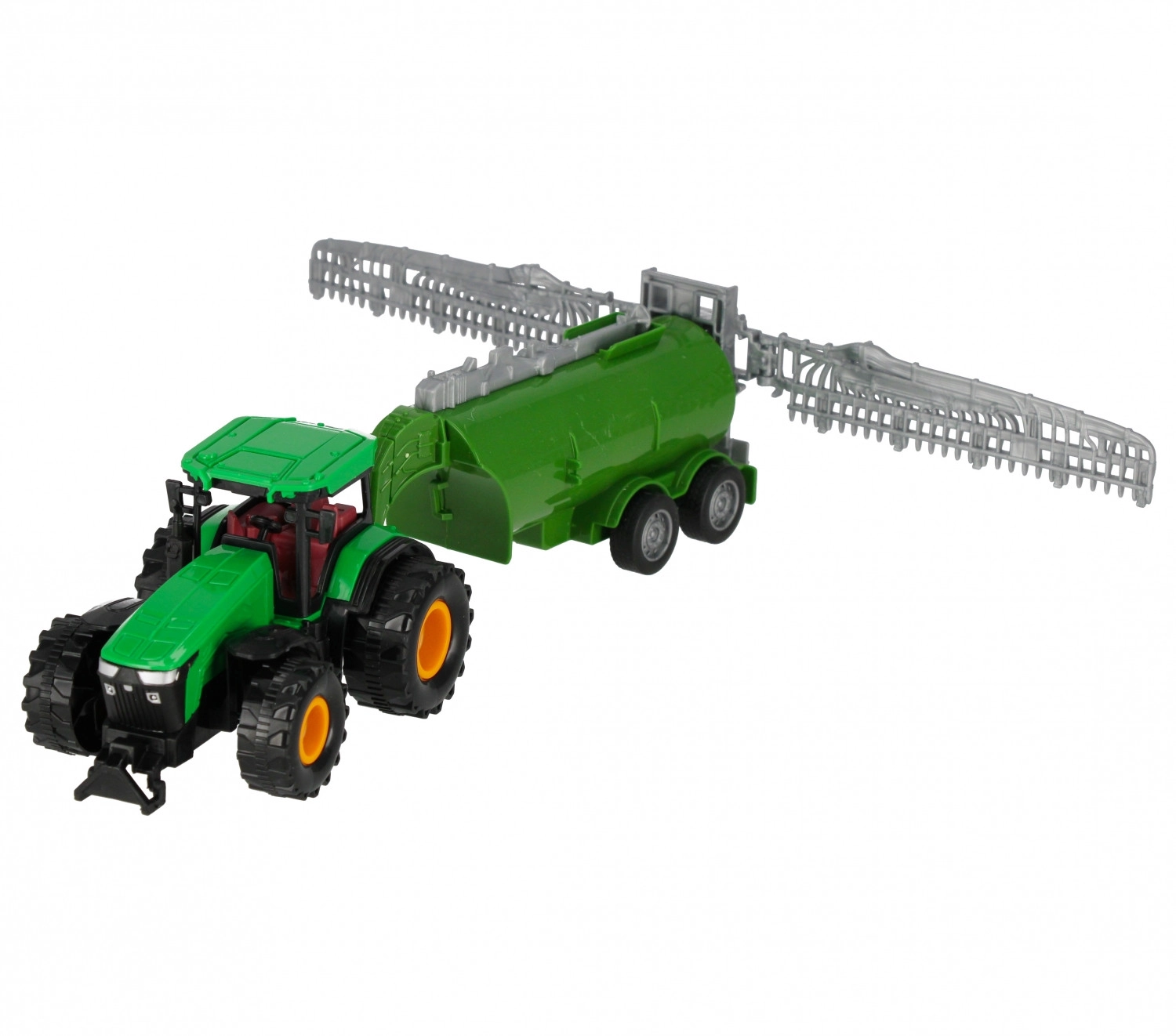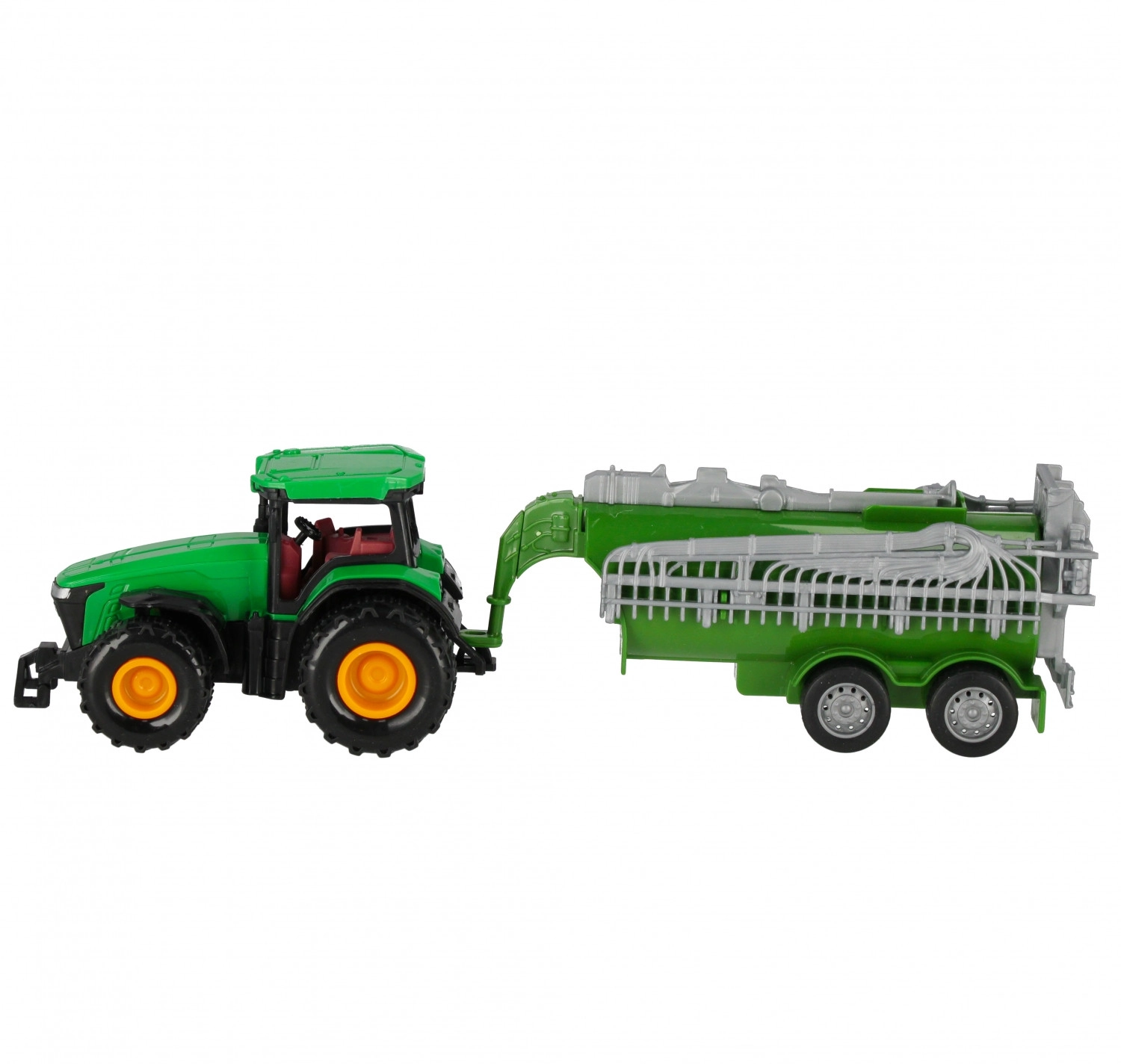 Dieses detailreich gestaltete Landwirtschaftsfahrzeug mit Tankanhänger bringt Kindern authentischen Bauernhofspaß. Dank der Pull-Back-Funktion einfach zurückziehen und loslassen – der Traktor fährt nach vorn und unterstützt dynamisches Spielen. Bewegliche Teile wie klappbare oder kippbare Elemente am Anhänger und realistische Kabinendetails laden zum Entdecken ein und fördern Motorik sowie Fantasie.