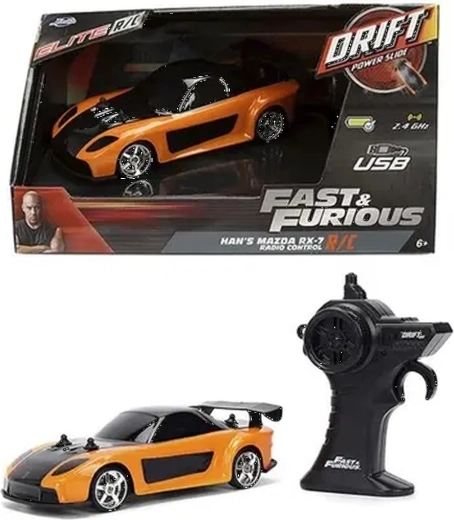 Genießen Sie authentisches Driften mit dem lizenzierten Mazda RX-7 aus dem Film The Fast and the Furious: Tokyo Drift im Maßstab 1:24. Dieses ferngesteuerte Fahrzeug bietet eine Drift-Funktion, Turbo-Boost für schnelle Beschleunigung und eine zuverlässige 2,4-GHz-Steuerung ohne Störungen. Batterien sind im Lieferumfang enthalten und lassen sich bequem per USB aufladen – ideal für Kinder ab 6 Jahren und Fans der Reihe.