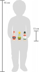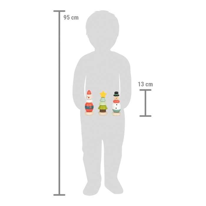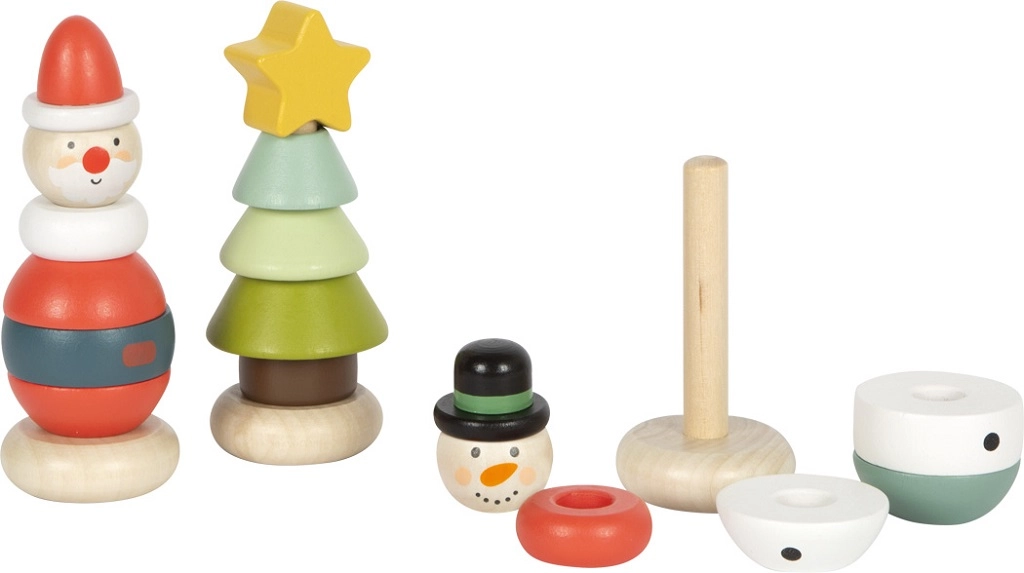Entdecken Sie fröhliches weihnachtliches Stapeln! Die Holzfiguren in Form von WEIHNACHTSMANN, Weihnachtsbaum mit goldenem Stern und lächelndem Schneemann bestehen aus mehreren bunten Ringen und Teilen, die auf einen stabilen Stab gesteckt werden. Das Spiel motiviert Kinder intuitiv, Griff, Genauigkeit und Konzentration zu trainieren – und sorgt gleichzeitig für eine schöne festliche Atmosphäre im Kinderzimmer und Wohnzimmer.
