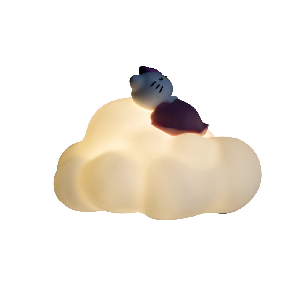 Diese Design-Lampe in Form einer weichen Wolke mit der entspannt ruhenden Figur Hello Kitty schafft eine beruhigende Atmosphäre zum Einschlafen oder für die abendliche Lektüre. Dank des warmen, sanften Lichts blendet sie nicht und eignet sich für Kinder wie Erwachsene, die gemütliche Ambient-Beleuchtung suchen.