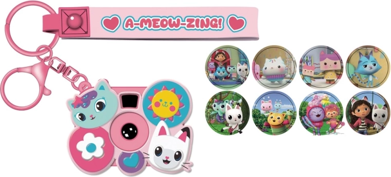 Entdecken Sie zauberhaften Spaß für unterwegs mit dem Schlüsselanhänger mit Projektor, inspiriert von der beliebten Serie GABBY’S DOLLHOUSE. Leicht und praktisch, passt er perfekt in die Tasche oder den Schulrucksack und bietet Kindern jederzeit und überall fantasievollen Spielspaß.