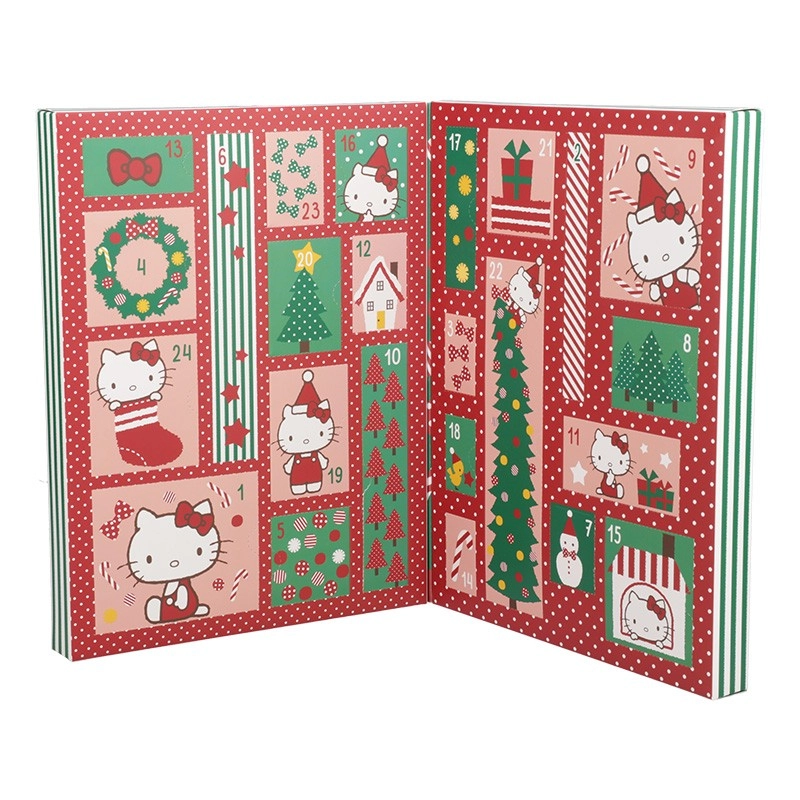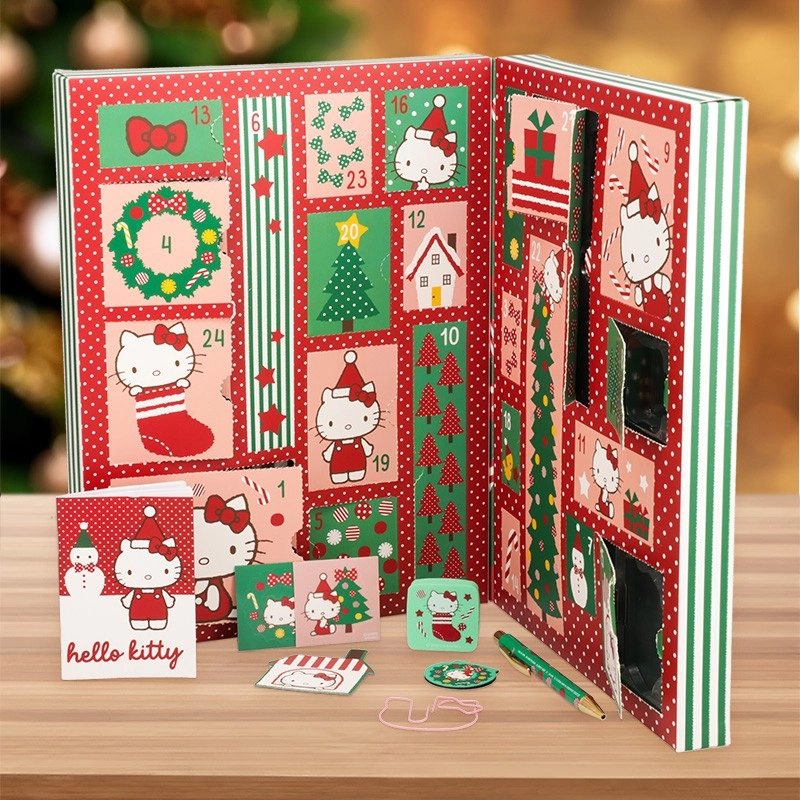 Hinter jedem Türchen verbirgt sich ein anderes Geschenk, das sowohl durch seinen Nutzen als auch durch sein Aussehen überzeugt. Enthalten sind zum Beispiel Notizblock, Bleistifte, Stift, Radiergummi, Büroklammern, Aufkleber, Anspitzer, Klebeband, Magnet und weitere Kleinigkeiten. Perfekt als Geschenk für Kinder und Liebhaber der Marke HELLO KITTY.