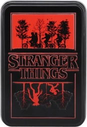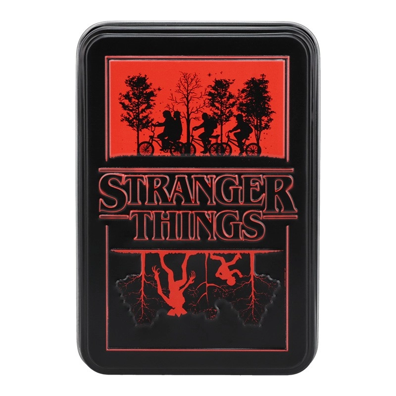 Entdecken Sie stilvolle Joker-Karten, inspiriert von der Welt von Stranger Things. Die praktische Blechdose schützt die Karten unterwegs und verleiht dem Set einen sammlerwürdigen Touch. Dank der vollständigen 54 Karten spielen Sie Ihre Lieblingsspiele zu Hause und mit Freundinnen und Freunden.