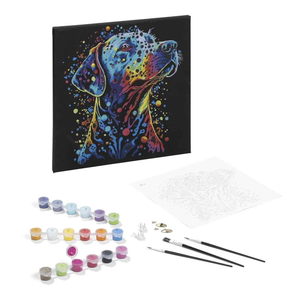Malen nach Zahlen ist eine großartige Möglichkeit, zu entspannen und gleichzeitig ein einzigartiges Kunstwerk zu schaffen. Die schwarze Leinwand verleiht dem Hundemotiv einen starken Kontrast und einen eleganten Look, der in jedem Interieur hervorsticht. Das Set eignet sich für Anfänger und Fortgeschrittene – folgen Sie einfach den Zahlen und Farben.